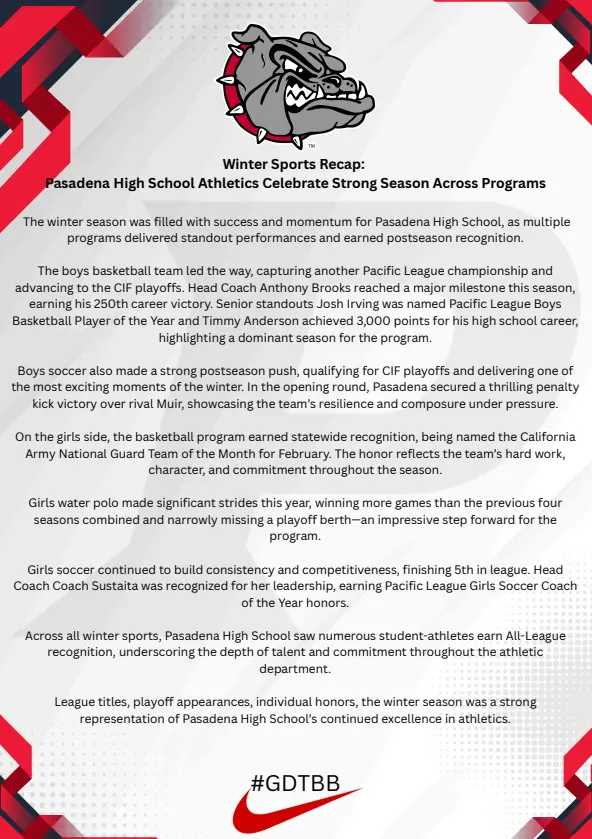© 1891-2026 - Pasadena High Athletics
